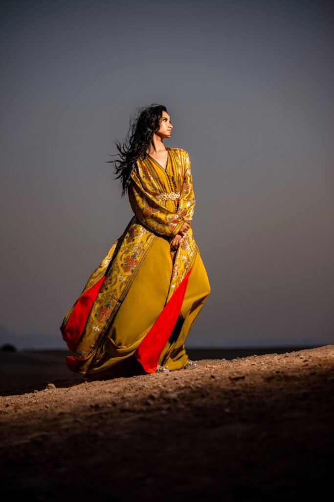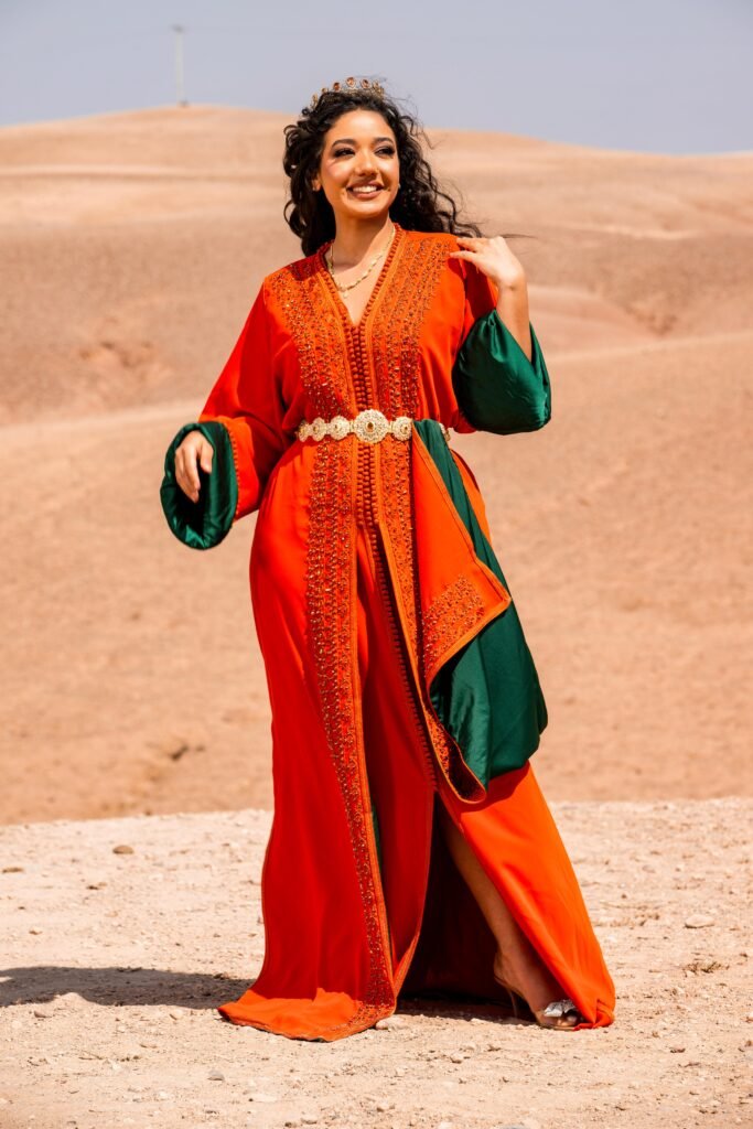 The Moroccan caftan first appeared in North Africa around 1700. It originated in ancient Persian culture. At the time, this traditional dress was simple and reserved only for sultans and members of Moroccan high society. Over time, this Moroccan dress has been democratised and is now accessible to all social classes. In 1960, this long dress has been appropriated by Moroccan women. The latter combined it with Andalusian embroidery. Today, the caftan has become one of the most popular oriental garments in the world of modern fashion.